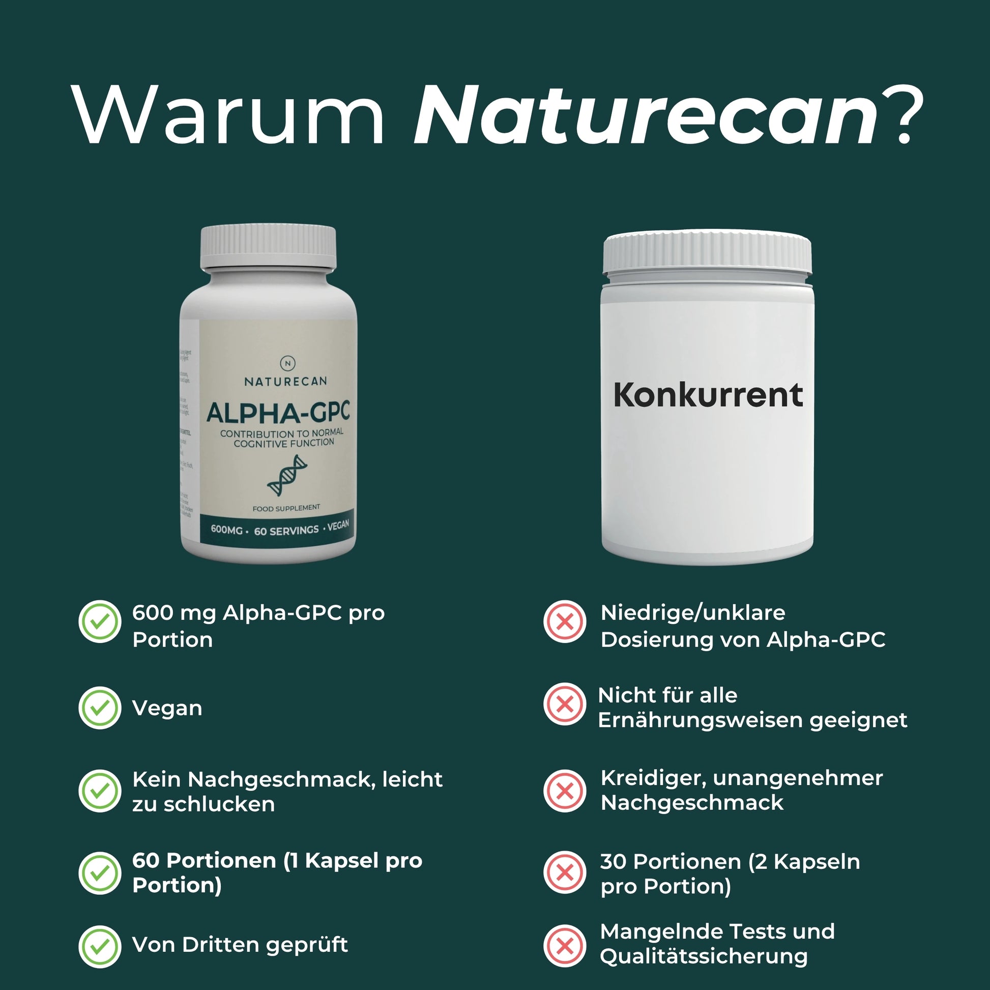 Verbessere deine Konzentration und unterstütze die natürliche Leistungsfähigkeit deines Gehirns mit Alpha GPC von Naturecan – einem hochwertigen, veganen Nahrungsergänzungsmittel für mehr geistige Klarheit und Wohlbefinden.