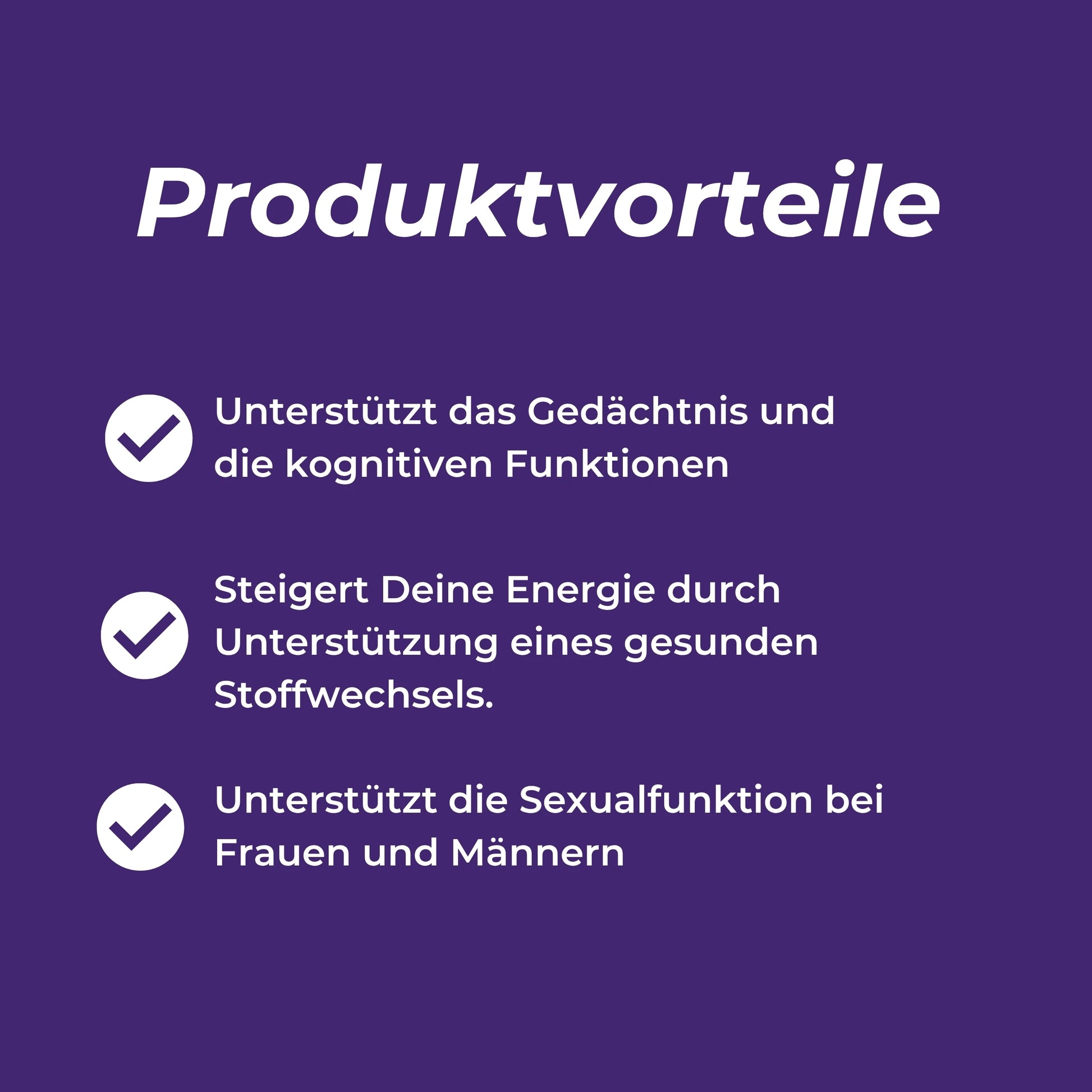 💡 Es wird seit Jahrhunderten in der traditionellen Medizin verwendet und bietet zahlreiche gesundheitliche Vorteile, darunter mehr Energie, bessere kognitive Funktionen & allgemeine Vitalität.