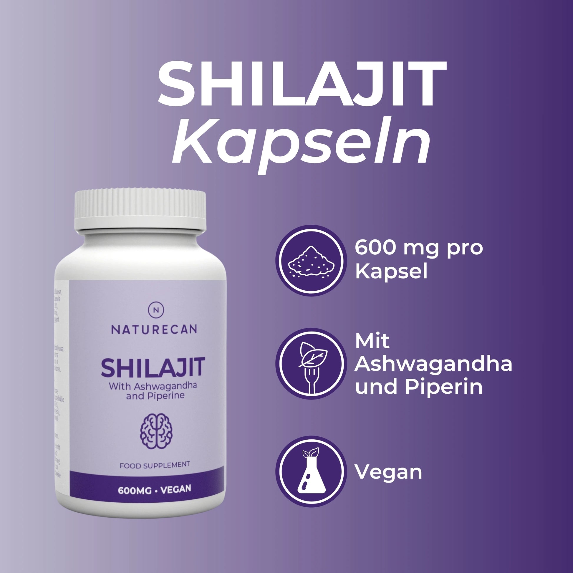 Entdecke die brandneuen Shilajit-Kapseln von Naturecan! Diese einzigartige Kombination aus Shilajit, Ashwagandha und Piperin sorgt für eine optimale Aufnahme und maximale Wirkung.