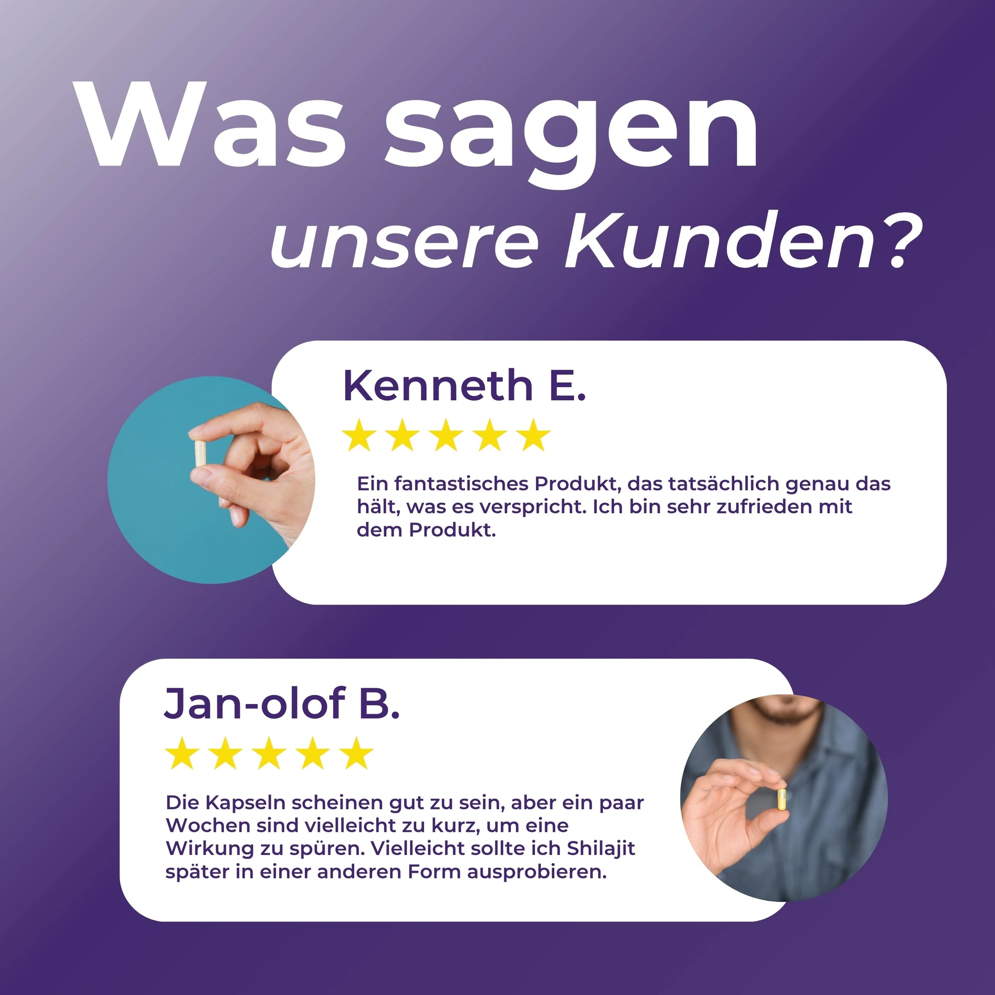 ✔ Unterstützt mentale Klarheit & kognitive Funktionen – Adaptogene Eigenschaften von Shilajit & Ashwagandha helfen, Stress zu reduzieren und die Konzentration zu verbessern.